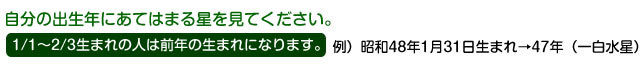 六白金星 S 15・24・33・42・51・60 H 6 年生まれ