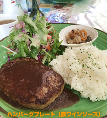 どれにしようか迷いましたが、ソースに惹かれ、「ハンバーグプレート(赤ワインソース)」をオーダーしました。