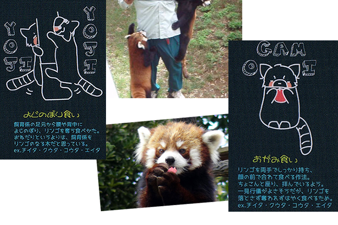 レッサーパンダがリンゴを食べている姿を見るだけでも楽しいですが、いろいろな食べ方を見つけられると、クリアファイルにのっている食べ方全部見てみたくなります。