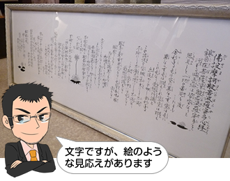 - ただ文字を書くだけではつまらないので、これは訓読みの般若心経を書いたものです。