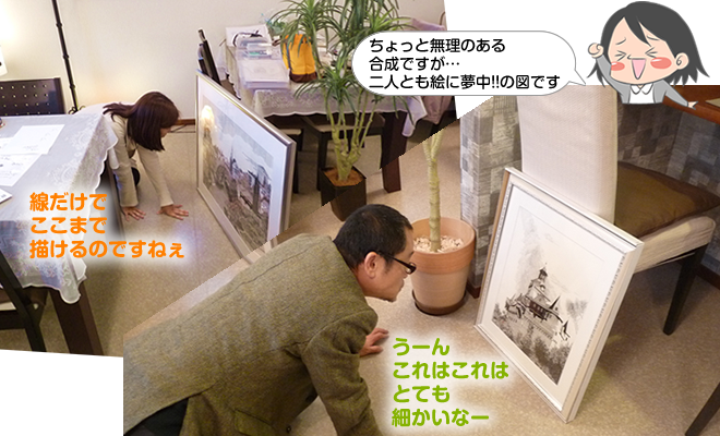 ペン画の作品を見せていただく