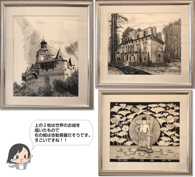 先生は、額に入った作品を数枚持ってきてくれました。