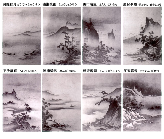 - 中国の山水画の伝統的な画題の瀟湘八景(しょうしょう はっけい)に合わせて