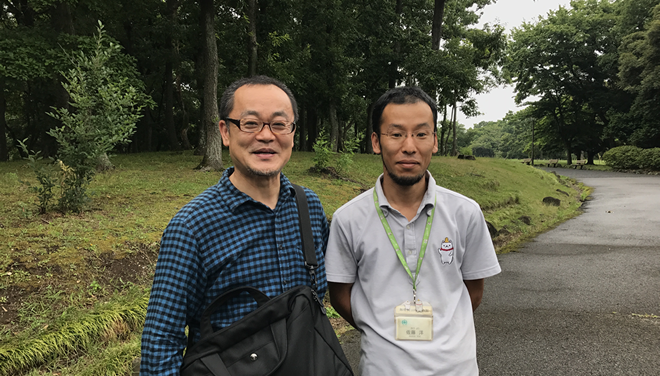 その解説をしていた方が、佐藤さんとおっしゃるのですが、チェリー隊長は前からご存じのようで、ここでもまた、縄文時代についていろいろと話に花が咲きました。そして、最後にチェリー隊長と佐藤さんで記念撮影。