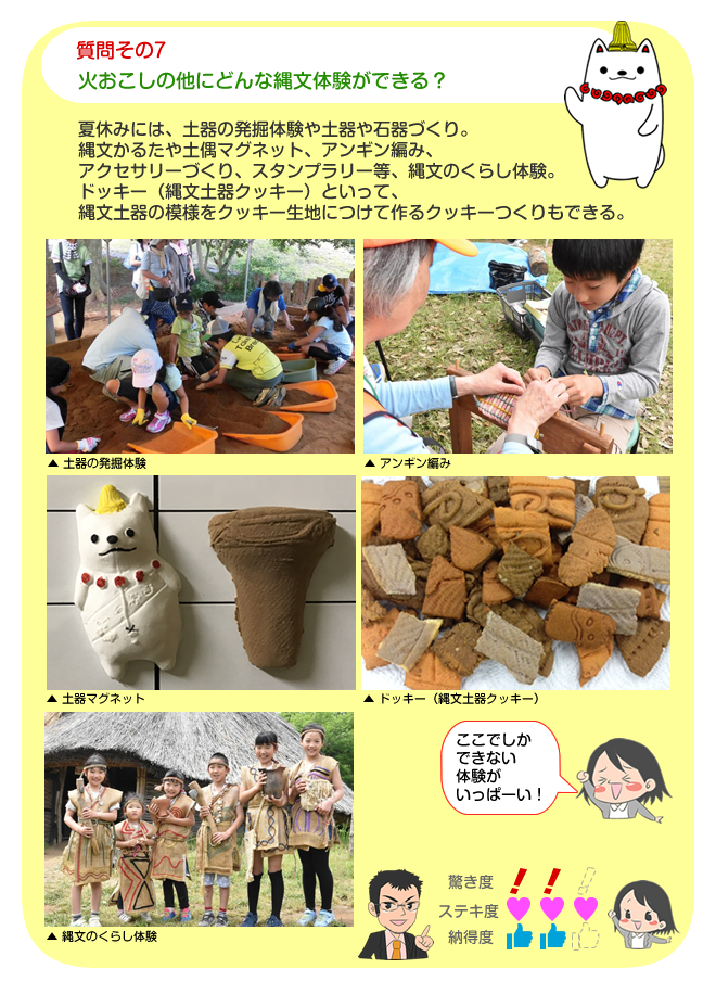 ■私は約半年ぶりに訪れました。館内の展示物の前で、体験アトラクションの最中に、学芸員やボランティアスタッフさんらが説明される内容が、いつも「縄文の謎」を秘めているように感じました。なんと一番最初のパネルの話を伺っていただけで、ふと気が付けば30分も経っていたのですよ。