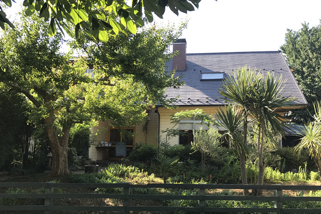 タンジョウファームキッチンに車を停めて、入口に向かうと、おとぎ話にでてきそうな建物が見えてきました。