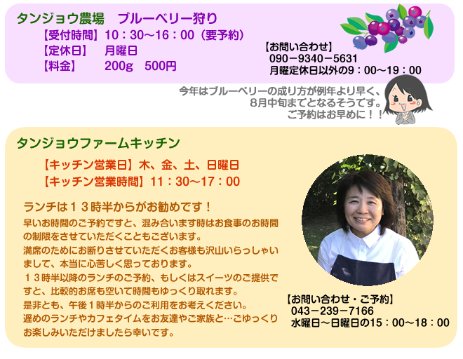 タンジョウファームキッチンは、秋以降もさまざまなおいしい催し物を実施しているようなので、ぜひHPを「お気に入り」などにストックしておいてね。