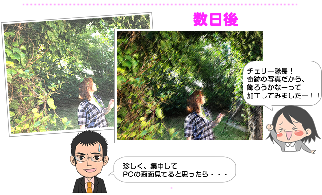 チェリー隊長が撮った何枚かの写真の中に、ベイ子の奇跡のショットが!!