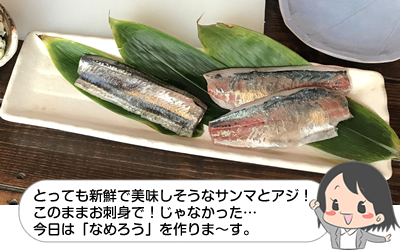 私は「サンマ」にします!サンマのなめろう食べたことないし。 - ベイ子ちゃん、こういう時は本当に早いよね(笑)では、僕は「アジ」で作ります。