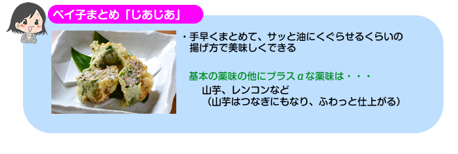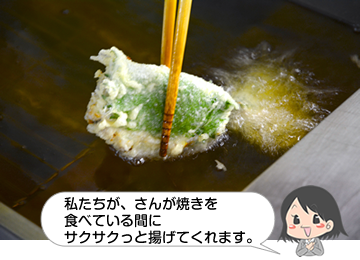 次は、なめろうを揚げて、じあじあを作ります。ですが、揚げ物は、厨房でやらないと危ないので、揚げてきていただきます。