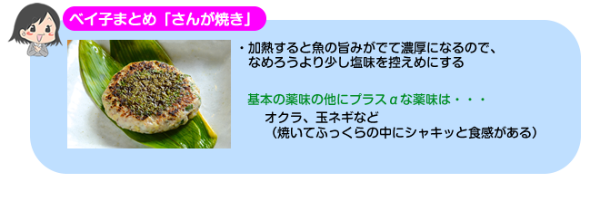 - なめろうを焼いたものが、「さんが焼き」ですよね?