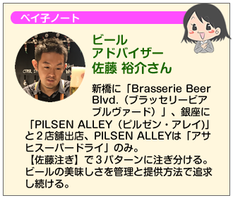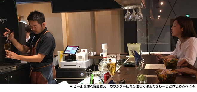 - 佐藤さん、ビールを注ぎ分けられるすごい人だとプミーから聞きました。今日はよろしくお願いいたします。