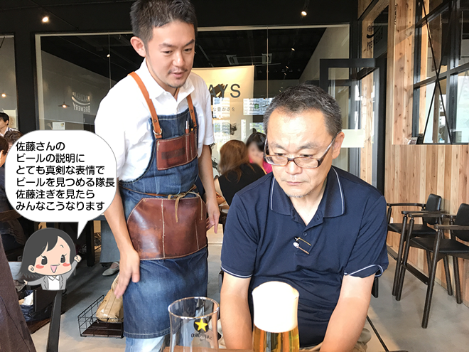 - ベイ子ちゃん今日は特別だから・・・佐藤さんの注ぐビールは佐藤さんのお店でね。 ここではアドバイザーさんなのだから