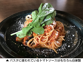 パスタ好きのチェリー隊長は「パスタランチ」、ベイ子は「お肉ランチ」にしました。