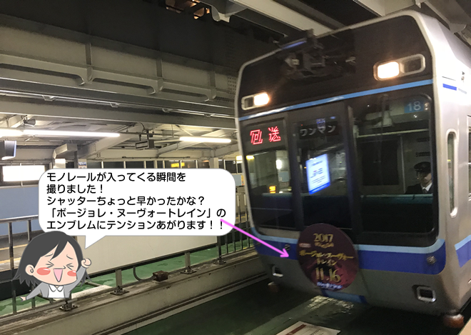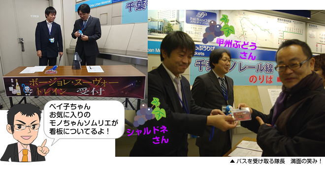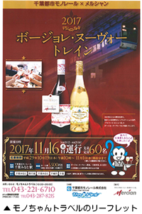 と、チェリー隊長から手渡されたリーフレットはこちら(右写真)ボージョレ・ヌーボーと千葉都市モノレールの写真がステキです。