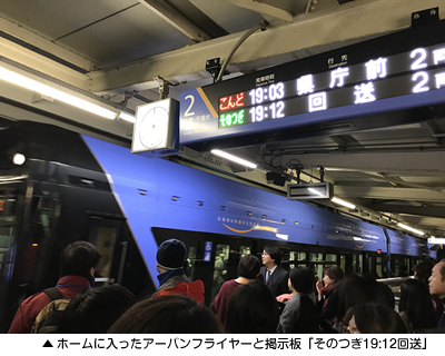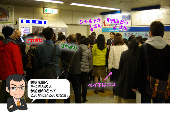 フォームに着くと、一般の乗客の方が、驚いた表情で振り返って参加者を見ています。