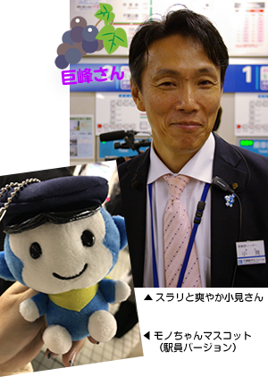 - あ、これ?かわいいでしょ。駅員さんバージョンなんです。窓口で売ってますのでよろしく。