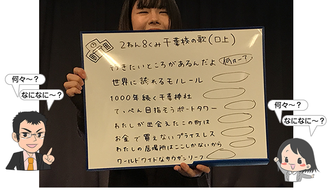 そして、りっちゃんがパネルを持ってきて、「2ねん8くみ 千葉校の歌」の口上の練習をしました。