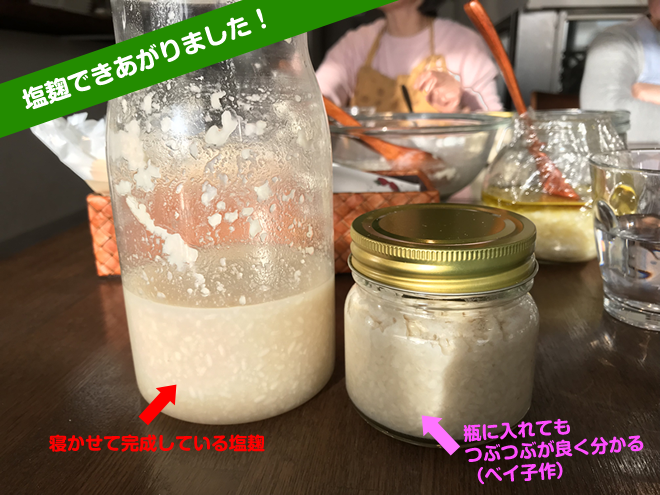 - できたら、持ち帰り用に瓶に詰めてください。蓋ギリギリまで入れてしまうと、持ち帰る間に発酵が進んで溢れてしまったりするといけないので、少し隙間ができるくらいに詰めてください。