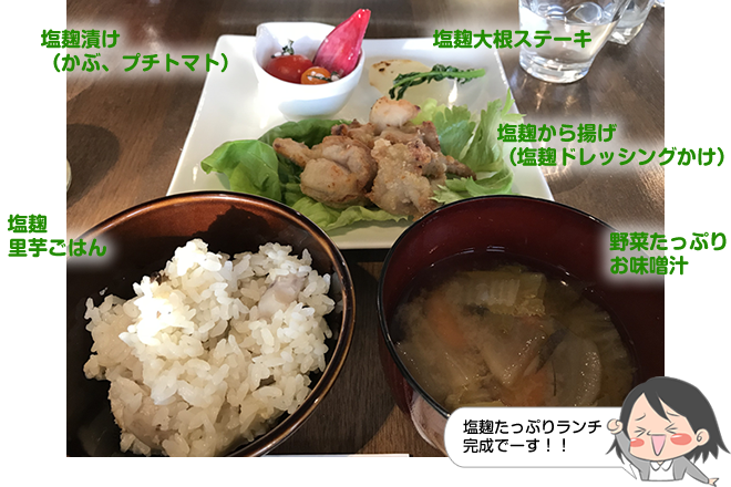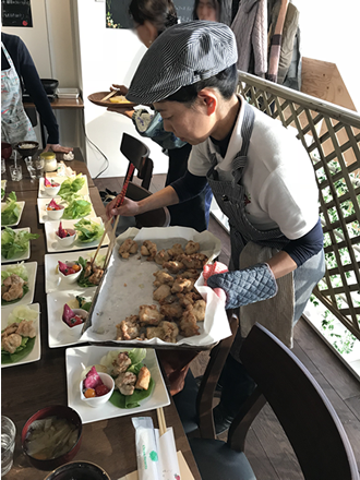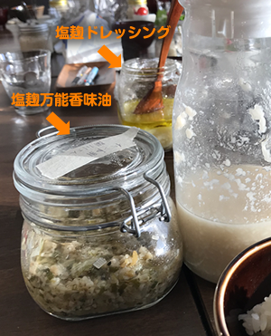 準備していただいている塩麹を使ったお料理をみんなで配膳していただきます。