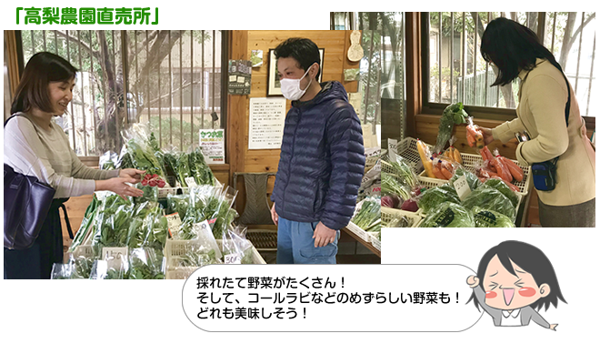 「つくたべ」の「つくる人」リストの中に、千葉の飲食店で、野菜を食べて美味しくて、お店の黒板に書いてあった仕入れ先のお名前を憶えていたに「高梨農園」さんのお名前を見つけました。佐々木さんに「高梨農園さんに行けないですか?」と相談しました。また、直売所もあるそうなので、つくたべの「買える場所」としても見てみたかったのです。