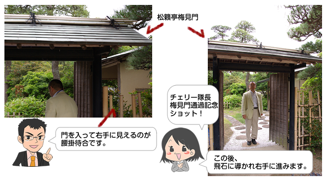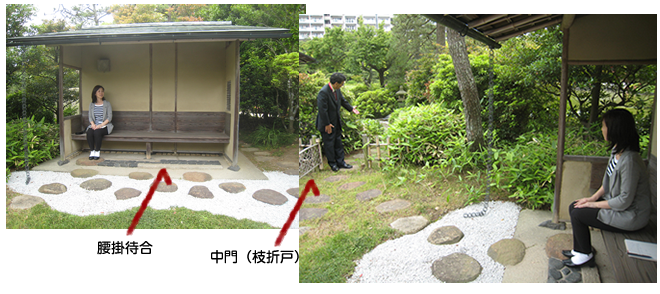 1)梅見門をくぐり、外露地を通り腰掛待合へ。