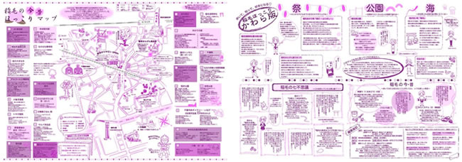 - 「稲毛の今昔ほっこりマップ」という面白いマップができたんだよ。地元の「桃花乙女の会」の皆さんが作ったんだ。