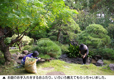 玄関に向かうと「ご自由にお入りください」と、貼り紙があり、ちょっと躊躇しながらも、入ってみました。お部屋を見て感動しつつ、縁側に座らせていただき、お庭のお手入れをしていたMさんにお話を伺いました。