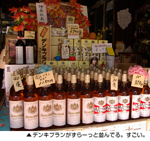 - はい。ありがとうございます。(デンキブランと蜂印香竄葡萄酒の棚に夢中)今回街歩きをしているのですが、こちらおみやげに買われる方多そうですね。