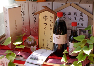 - 300年もの間、おしょうゆしか作っていないそうです。十水仕込み諸味(もろみ)を秋田杉の大桶で熟成させる伝統桶仕込み、純・天然醸造のおしょうゆです。