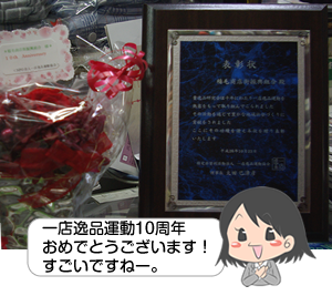 - そう。昨日一店逸品運動協会で表彰されたんだ。盾もあるんだけど写真撮る?