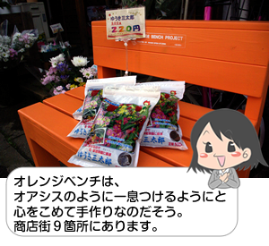 あ!これは、オレンジベンチじゃないですか! - とても便利なのです。こうしてちょっと置けたり、もちろんお客様にも座っていただけますし。