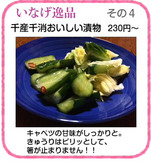 - 今年はオーソドックスに、うちは八百屋ですから漬物にしました。「千産千消おいしい漬物」です。千葉の旬の野菜を塩分少なめで。