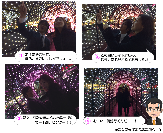 お腹も一杯になりました。もうちょっとデートを楽しみたいというカップルのために、ホワイティ隊員のプランでもあった「ルミラージュちば2014」も見に行くことにしました。