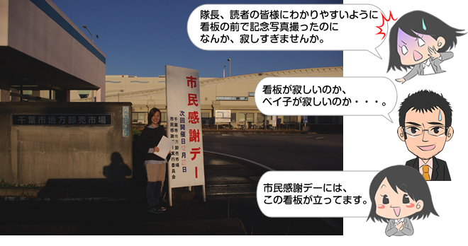 - さて、今年最後の取材はベイ子ちゃんが前から行きたいって言ってた千葉市地方卸売市場に連れて行くよ!