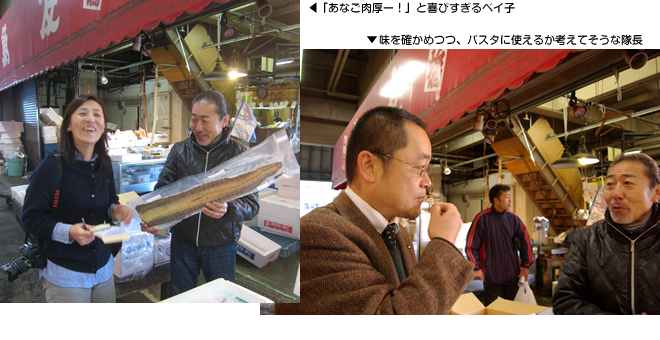 - そう、2014年4月から、これまで月1回だった「市民感謝デー」が2回に増えて、お客様も急増中。朝の市場に足を踏み入れ、魚を仕入れたり、