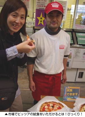 東京フードサプライは錦糸町・亀戸にお店のあるピザやさんで2014年から市場に出店をはじめられました。ピッツアの試食は感謝デーの魅力をアップしてますね。