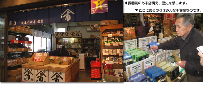 創業大正十四年と書かれた暖簾がいいです。歴史ある店構え。海苔のことを伺うと、ウチにあるのは千葉産だな『なんせ上総ものの海苔が一番おいしい』からね。と教えていただきました。