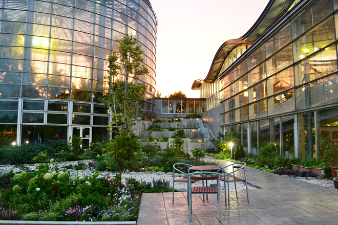 夏の夕暮れを三陽メディアフラワーミュージアムで