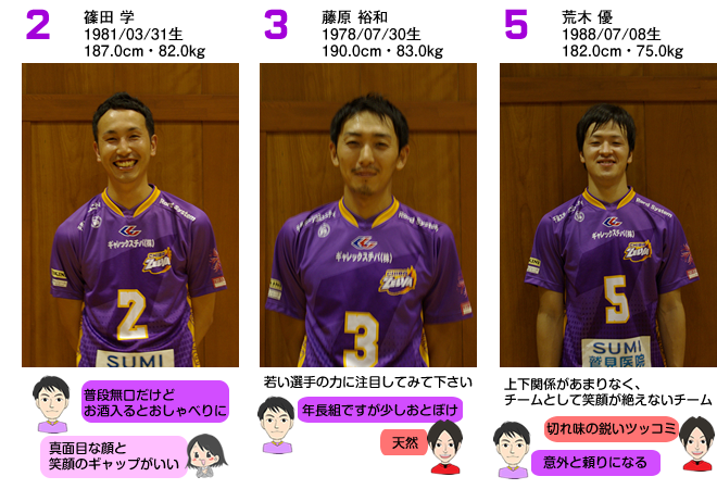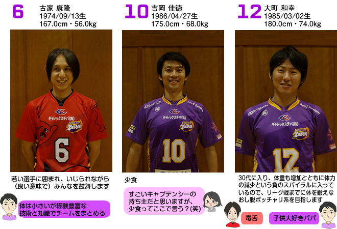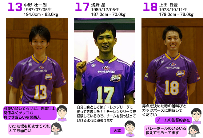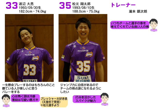 千葉ゼルバの選手のみんなに聞いたり見たりを本人のPRにプラスして、吉岡選手、古家選手、ベイ子のコメントにてご紹介。