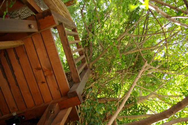 いよいよツリーハウスに登ります。湯浅さんも一緒に登ってくださるそうです。