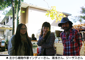 ジーザスさんが来て、樫の木の下にある椅子に座っていた織物作家インディーさんを紹介してくれました。