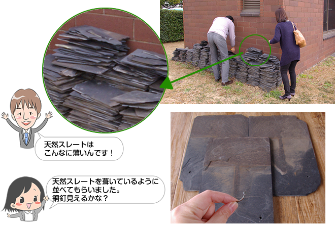 屋根の荷重軽減のためにこの天然スレートから金属板に葺き替えました。 - 雄勝石、美しい!綺麗ですね。