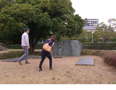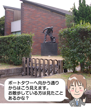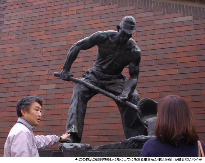 - 多分設置者も注目して観てもらいたかったのだと思います。台座がここまで高く造られているのは、みなさんに作品の価値を知ってもらいたいという意図です。また、台座もなくそのまま置いている作品は触れて親しんでほしい作品なのです。
