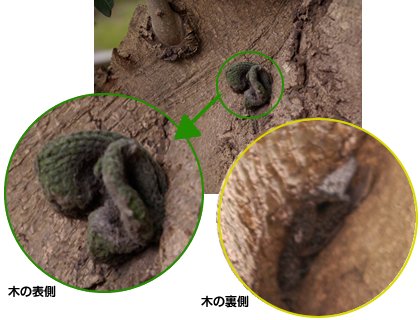 庭の作業をした人が木にかけて忘れたらしいのですが、誰にも発見されずに何十年もの月日が流れたようなのです。気がついたら、木が軍手を抱き込んで成長していたそうです。