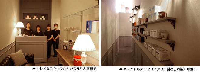 ¤³¤Á¤é¤Ç¤Ï¡¢¿åÁÇBAR¤È¥Þ¥Ã¥µ¡¼¥¸¡¢¤½¤·¤Æ¥¢¥í¥Þ¥ª¥¤¥ë¥Ü¥Ç¥£¥±¥¢¤¬¼õ¤±¤é¤ì¤Þ¤¹¡£¥¢¥í¥Þ¥ª¥¤¥ë¥Ü¥Ç¥£¥±¥¢¤Ï½÷ÀÀìÍѤǤ¹¤¬¡¢¿åÁÇBAR¤È¥Þ¥Ã¥µ¡¼¥¸¤ÏÃËÀ¤â¼õ¤±¤é¤ì¤Þ¤¹¡£