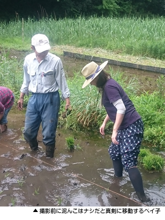 - 靴や長靴は脱いじゃった方が楽ですよ。じゃないと、田んぼの中で身動きが取れなくなっちゃいますから。