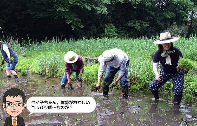 さあ植えましょう!まずはベイ子が田んぼに入ります。