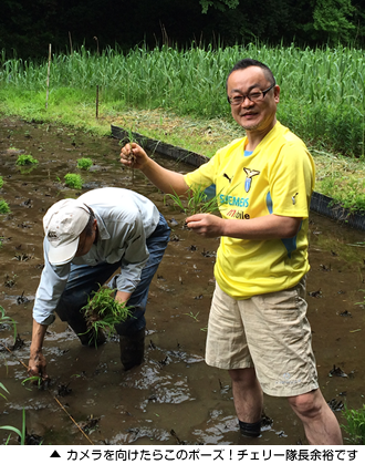 続いて、チェリー隊長も人生で初!田んぼに入ります。