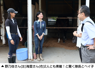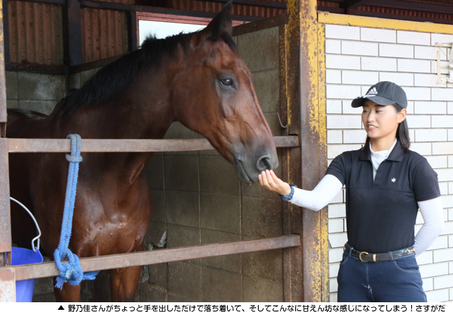(野乃佳さんが馬をなでると耳が前向きに)さすがすぐ安心するんですね。